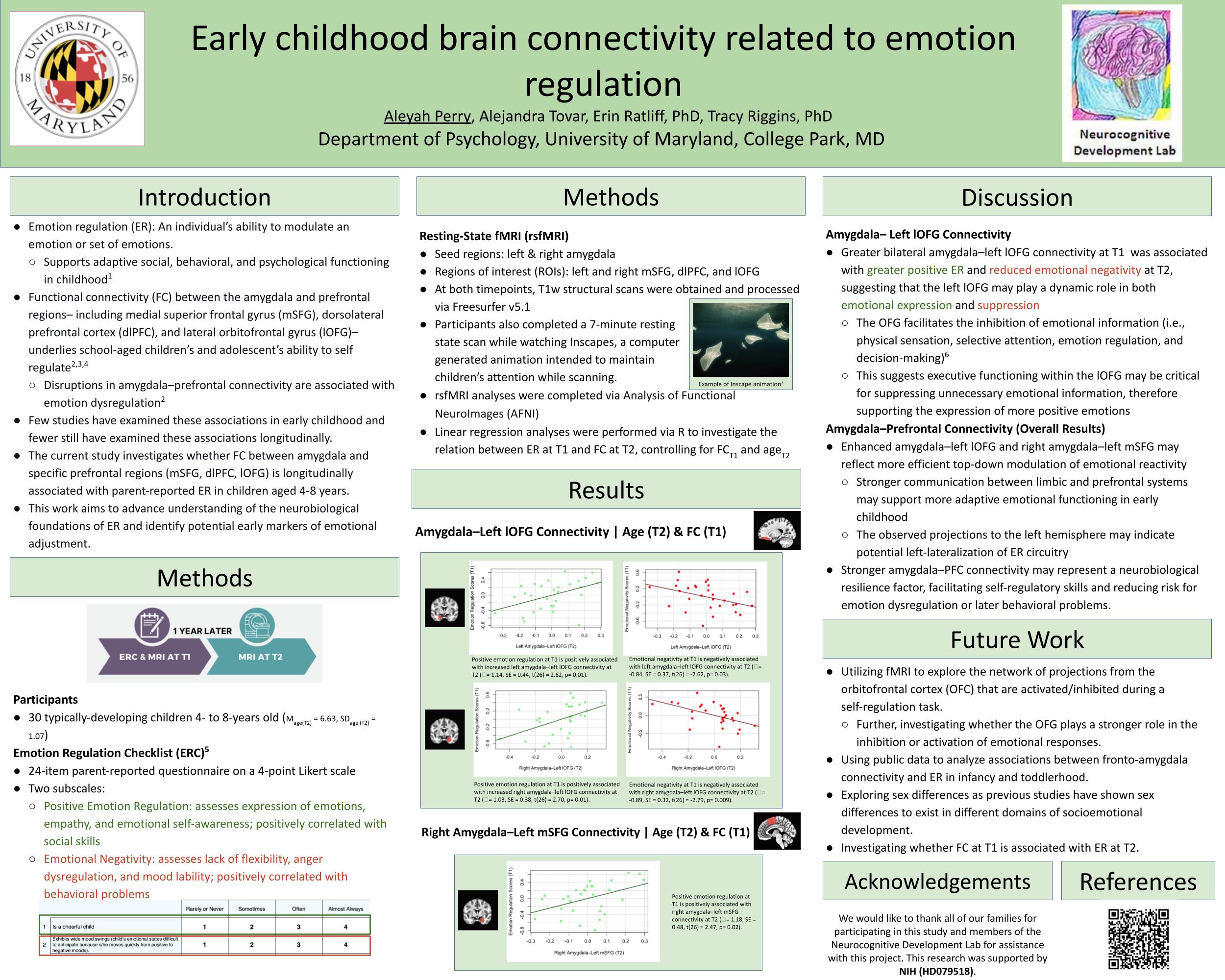 Perry, A., Tovar, A., Ratliff, E., Riggins, T.. (2025, Nov.). Early childhood brain connectivity related to emotion regulation [poster presentation]. International Society for Developmental Psychobiology, San Diego, CA PDF